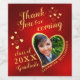 Create unique red and gold Thank You bottle labels for the 2025 Graduation party or for favours with an elegant design that features a heart shaped photo, the Graduate's name, and year. Use the template to type your Grad's name and year and upload a picture before ordering.