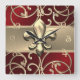 Red and Gold Filigree Swirls Fleur de Lis Square Wall Clock