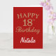 Red and Gold Glitter 18th Birthday Card with personalized name. For further customization, please click the "Customize it" button and use our design tool to modify this template.
