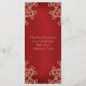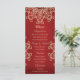 A beautiful garnet and ruby red JEWEL TONED and gold wedding menu card with an exotic Indian inspired ornamental sari MEDALLION pattern WITH A FLORAL AND LOTUS SUNBURST DESIGN. This elegant and beautiful modern Indian style wedding invite is perfect for any formal occasion WITH AN EAST ASIAN INDONESIAN MOROCCAN ALADDIN OR ARABIAN NIGHTS THEME. Designed by Chrissy H. Studios, LLC. All Rights Reserved.