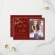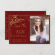Elegant Gold Leaf and Red Save the Date with your own photo and ornate hand lettered calligraphy. The template is set up for you to upload a picture of the quince and personalise with your celebration date. The design has fine line drawn leaves and solid gold leaf foliage with confetti. Please browse my store or message me for matching invitations, stationery and day of event decor.