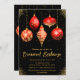 Host a festive and stylish ornament exchange with this luxurious black, red and gold invitation. This design features a rich black background adorned with shimmering gold accents and five intricately illustrated hanging ornaments, each showcasing floral, snowflake and geometric patterns. This elegant layout sets the tone for a warm and celebratory seasonal gathering. Perfect for holiday swaps, office events or cozy get-togethers with friends and family.