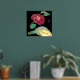 Stylish foil print featuring a red and gold poppy. Beautiful abstract floral print sure to please the eye.