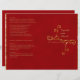 This elegant design, called Red and Gold Tassel Indian Wedding, has a red background. On the front there is a gold scroll filigree design in a faux gold glitter. Hanging off the filigree on the front of the invitation there is a beautiful gold tassel. The back has a red background with your text in gold. This set has invitations, save the date cards, response cards, thank you cards, table number cards, wine labels, wedding programs, and many more day-of wedding stationery pieces, favours, and gifts to coordinate. All elements are printed on our high quality products, they do not include any real gold, jewels, embossing, or other textile elements. All designs are copyright Noteable Expressions, Inc. All rights reserved.