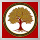 Red and gold tree of life on white and red background.
