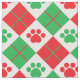 Red and Green Argyle Paw Print Fabric