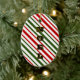 Red and Green Candy Stripes Noel Christmas Ceramic Ornament
