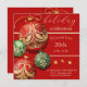 This holiday celebration invitation is designed to add a touch of festive charm to your holiday party! With intricate red and green ornate Christmas ornaments adorning both the front and back of the invitation, this design sets the perfect tone for your merry gathering. Red ornaments feature an intricate gold design, and the green ornaments also feature a gold design. Fully customise this invitation by adding all of your party details. The reverse of this invitation features the same ornament design. Enjoy your party.