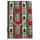 Pretty holiday gift wrap. Green and red Christmas plaid and pixelated Christmas Trees.