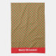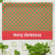 Red, green and white plaid set diagonally makes a festive Christmas kitchen towel. Personalise with your holiday greeting or a name in a wide, red band at the bottom.