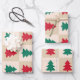 Red and Green Christmas Trees Pattern Wrapping Paper Sheet