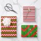 A trio of designs for your Christmas gifts. This set includes a red, white and green zig zag stripe design, red and white stripe design and a red and green geometric design.  View our full line of gift wrap products in our Zazzle store.