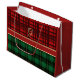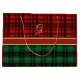 Red and Green Cozy Plaid with Gold Initial Large Gift Bag