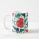 This is a colourful watercolor vintage floral pattern with red flowers and green leaves on a white background.