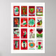 Red and Green Matchbox Label Collage, colour blocked art print, vintage ephemera poster, festive home decor, gallery wall piece