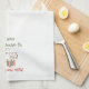 The artwork features elegant calligraphy of "Merry and Bright" in a festive red and green Christmas theme. It includes two customisable typography fields that currently read "May Your Holiday Season Be" and another for family name or other personalisation. Personalise your Christmas holiday greetings and add your name or other holiday cheer note for one-of-a kid festive personalised holiday kitchen towel!