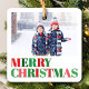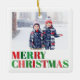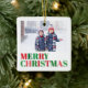 Celebrate the season with this Merry Christmas photo ornament, perfect for showcasing your family memories. Designed with modern typography in festive red and green, it features bold lettering and a simple, minimalist layout that complements any holiday style. This Christmas tree decoration offers a clean yet festive look, making it a timeless keepsake for your loved ones. A minimal design with maximum holiday cheer.