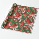 Red and Green Mushroom Forest Pattern with Flowers Wrapping Paper
