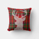Red and Green Plaid Christmas Pillow with deer stag antlers