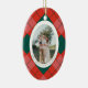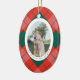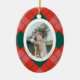 Red and Green Plaid Family Photo Oval Christmas Ceramic Ornament