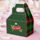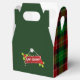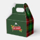 A festival favour box with a red and green Christmas plaid design, with text "Happy Holidays". Customise it to change fonts or sizing, even save your design for later.