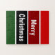 A red and green horizontal striped pattern and the text: Merry Christmas.  You can click personalise and edit the text. Write 2 words in one line and they will appear on two rows.