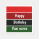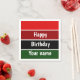 A red and green horizontal striped pattern and the text: Happy Birthday. You can click personalise and edit the text. Write two words in one line.