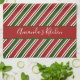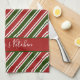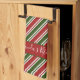 Red and Green Stripes Personalised Christmas Tea Towel