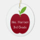 Red and Green Teacher Apple on White Personalised Ceramic Ornament