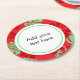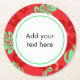 Red and Green Tropical Hibiscus Floral Custom Text Round Paper Coaster
