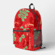 Red and Green Tropical Hibiscus Floral Printed Backpack