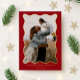 Celebrate the season with this classic holiday photo card featuring a bold red background, deep green accent, and a shimmering gold wavy frame. The front showcases your family photo with “Happy Holidays” in elegant gold foil typography, while the back includes a heartfelt holiday greeting. Perfect for sending warm wishes to family and friends, this traditional yet modern card design captures the festive spirit with timeless Christmas colours and a sophisticated frame style.