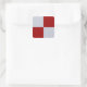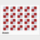Two red rectangles and two grey rectangles form a chequered pattern in this clean graphic design.