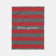 Red and Grey Rugby Stripes with Custom Name Fleece Blanket