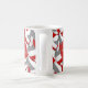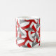 This red and grey team colours volleyball themed coffee mug can be customised with the coach's name on a simple white volleyball graphic on one side of the mug and the team's name, school name and sports season/year on a second white volleyball graphic on the other side - background is a grouping of red, grey and white volleyballs arranged in an oversized mirrored pattern -- by katz_d_zynes