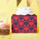 A wrapping paper built with a red and navy blue chequered pattern with hearts. Customise the navy blue background colour among several options.