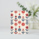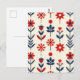 Red and Navy Folk Floral Pattern Postcard