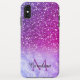 This girly purple marble and glitter mobile phone case can be personalised with your name and monogram.