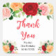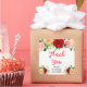 This beautiful and elegant birthday thank you sticker features watercolor red, pink and orange roses with foliage. The text combines handwritten script and serif fonts for a stylish and modern look. This is perfect for a summer rustic birthday.