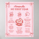 Celebrate your baby girl’s first year with our Red and Pink Bow Cake 1st Birthday Milestone Sign. Featuring a sweet combination of red and pink hues, dainty bows, and a charming cake illustration, this design beautifully highlights your little one’s favourite things, first words, and special milestones. Perfect for displaying at her birthday party, photo area, or as a keepsake, this milestone sign adds a lovely, personalised touch to your girl’s first birthday celebration.