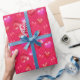 Red and Pink Satin Hearts on Red Valentine Wrapping Paper