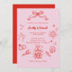 Red And Pink Whimsical Retro Doodle Wedding Invitation