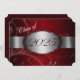 Red and silver graduation invitation with light and dark red floral and a silver ribbon going across showing the year of graduation. The back of the card is red with light silver font for people to fill in the graduation announcements.