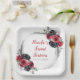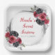 Red and Silver Elegant Flowers Sweet Sixteen Paper Plate