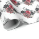 This fun and whimsical wrapping paper features red and silver elegant flowers.