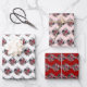 These fun and whimsical wrapping paper sheets features red and silver elegant flowers.