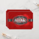 Floral designs surrounding button on top of a silver ribbon that has floral designs. Red cloudy background. The back of the card has a red background with white lettering for the graduation announcements.