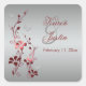 Red and Silver Floral with Butterflies square wedding sticker/envelope seal matches the wedding invitation shown below.