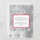 This modern design features a graduation hat and confetti in silver on a background of red with white text.