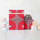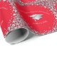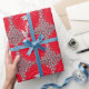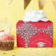This modern design features a graduation hat and confetti in silver on a background of red with white text.